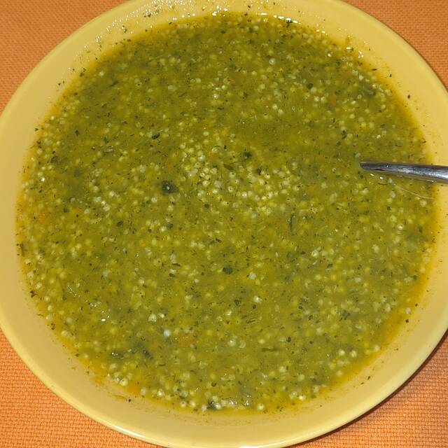 Oggi a pranzo passata di verdure con grano saraceno La facciamo molto spesso con le verdure appena acquistate dal contadino, é buonissima! Mi ero dimenticata di fare la foto, ho fotografato le ultime cucchiaiate 😅