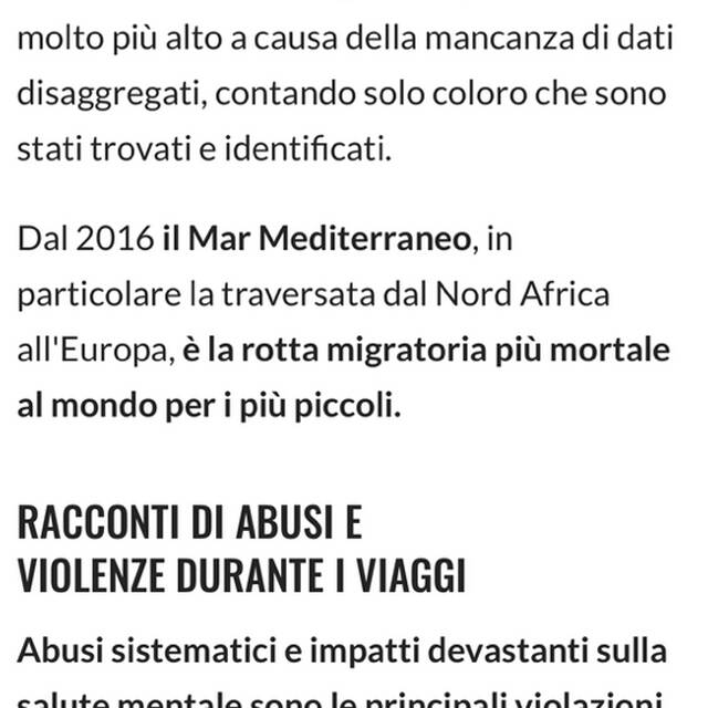 Oggi sarò off topic… credo che meriti una lettura il rapporto di save the children rispetto alle vite che attraversano le rotte migratorie, soprattutto riguardo ai minori. Ciò che accade nel mediterraneo centrale non ci può lasciare indifferenti e il primato é abbastanza triste, inoltre i dati sulle morti sono solo quelli 'ufficiali' di individui ritrovati e identificati probabilmente la realtà è anche peggiore. Personalmente concordo molto con questo stralcio che riporto "Chiediamo all’Unione Europea e agli Stati membri di porre fine alle politiche che privilegiano il controllo delle frontiere a scapito della protezione dei minori. Bisogna intervenire con urgenza per fermare abusi, sfruttamento e ogni altra violazione dei diritti dei minori.'