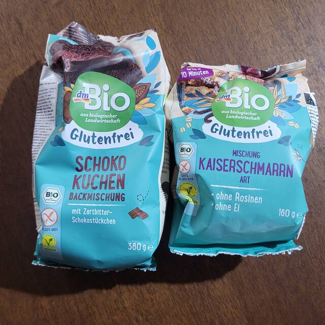 Ho scelto il preparato per brownies e muffin al cacao e il preparato per kaiserschmarrn vegano ma ce n'erano anche altri.