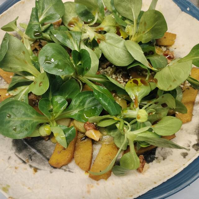 Ho improvvisato una piadina con il seitan🤩 Ho tagliato il seitan a sfilacini, condito con poco olio, pepe, curcuma, aglio in polvere, erba cipollina, cucinato a 180°in friggitrice ad aria ( ma anche in padella va benissimo). Nel mentre scaldato la piadina e ci ho messo il formaggio al tartufo di Veghu, o tagliato un cetriolino sotto miele di un'azienda agricola vicino casa, noci, semi di canapa, valeriana, un po' di olio di lino ed e' pronta. In tutto ciò avrò messo neache 20 minuti.