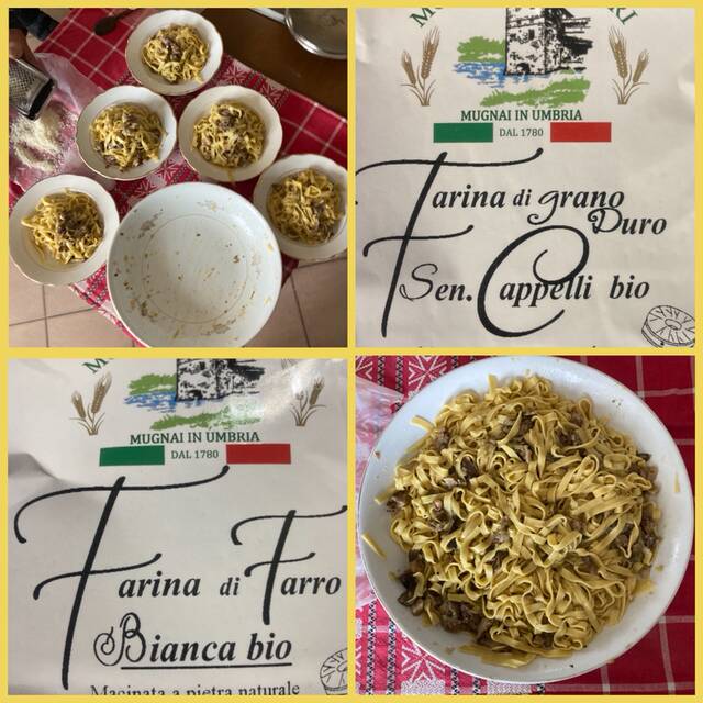 Oggi cosa ho fatto in cucina? Tagliatelle alla chitarra! Era un desiderio che covavo da un po di tempo e finalmente mi sono lanciato nella preparazione. Per l'impasto, ho voluto solo il meglio, unendo due farine biologiche: metà di Grano Duro Senatore Cappelli, metà di Farro e infine le uova delle mie galline. E il sugo? Funghi raccolti personalmente nel mio bosco e qualche fetta di melanzana grigliata del mio orto, entrambi congelati ma che stavano aspettando il momento giusto per essere utilizzati. A completare questa sinfonia di terra, ho aggiunto un porro, e se siete curiosi se tritato finemente oppure no, vi dico che l'ho fatto a rondelle e che si è sciolto come il burro. Infine, un generoso filo di olio extra vergine d'oliva di alta qualità (il mio) e un pizzico di sale per esaltare il tutto. Cosa serviva altro? Assolutamente niente! Il verdetto? Perfino il mio accanito critico culinario ha capitolato al primo boccone. Il suo commento iniziale, tuttavia, è stato inequivocabile, prima di assaggiarle e vedendole nel piatto: "Per me poche! Solo due!"