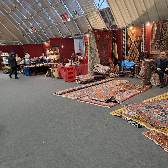 Moltissimi espositori in un enorme capannone riscaldato, concepito anche per altre esposizioni.