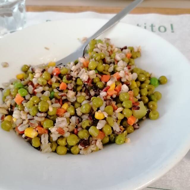 In questi giorni sono pasti un po' veloci perché non abbiamo molto tempo o siamo troppo stanchi… Sigh.. oggi a pranzo insalata mista locale (un po' del suocero, un po' del Ceppo), ceci già cotti di Libera Terra e due carciofi messi sott'olio fatti da mia madre… E un poco di pane senza glutine… Tutto condito con olio extravergine Toscano, un pochino di cipollina, un poco di aceto, e un pochino di salsina piccante fatta da me e poi congelata (la poltiglia amorfa vicino ai carciofi🤣)….. Slurp… Per me buonissimo e soddisfacente e leggero…