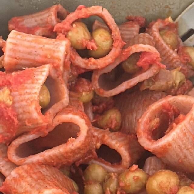 Ieri sera per cena tempeh di soia e piselli e radicchio passato con l'arancia, era ottimo!
