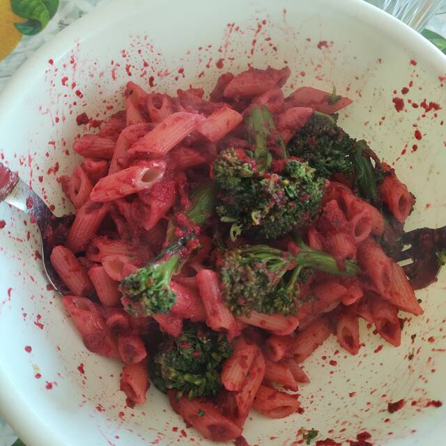 Devo dire che il merito va ancora una volta al marito: sugo di verdure piccantino. Antefatto: Alla fine dell'estate ho fatto un esperimento con i peperoncini 🌶️ coltivati da padre, (nonostante madre fosse molto scettica a riguardo per la possibilità di fermentazione) ho pestato con l'olio quelli che mi aveva fornito appena raccolti e messo in un mini vasetto in frigo questo pesto di 🔥. Mio marito ha gradito molto quest'idea e oggi nel sugo ha sommato una puntina di pesto 🌶️🔥 e un bel giro di olio piccante; 🥵 questo ha contribuito a : farmi mangiare più lentamente, percepire meglio la sazietà e bere a volontà 🤣 confermando che per me il piccante annulla le papille gustative.