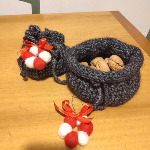 Anche quest'anno siamo riusciti a non comprare cose superflue per le feste. Per non cadere nella sovraesposizione ai dolci l'unico panettone che è entrato in casa è un panettone artigianale donato a ciascun dipendente nell'Azienda per cui lavora mio marito. Nella spesa di ieri invece ho preso il cioccolato fondente che era l'unico ingrediente mancante per il nostro salame di cioccolato delle feste. La maggior parte dei regali sono riuscita a realizzarli handmade, in foto l'ultimo finito giusto in tempo!
