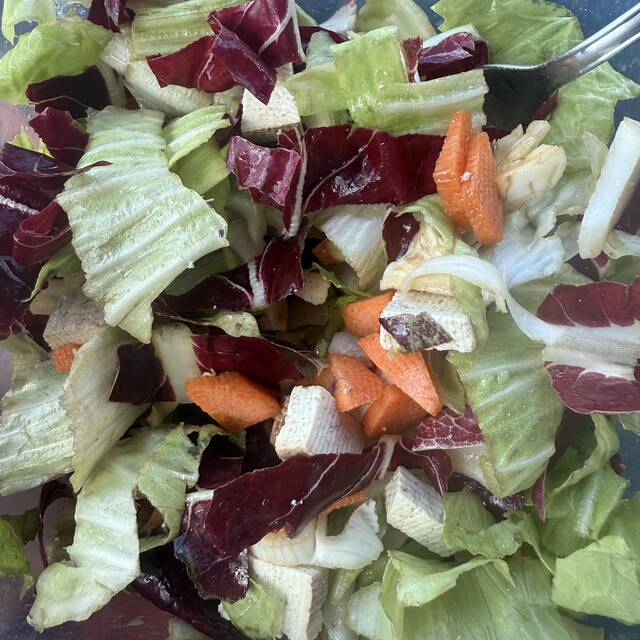 Pranzetto di oggi 🥗🥙 una gustosa insalata mista (coltivata da mio zio) con carota. E le proteine? Il TOFU, a me piace molto quello di Lidl