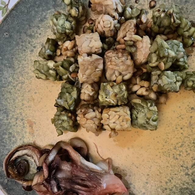 Ieri sera per cena tempeh di soia e piselli e radicchio passato con l'arancia, era ottimo!
