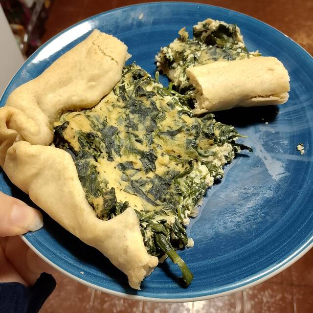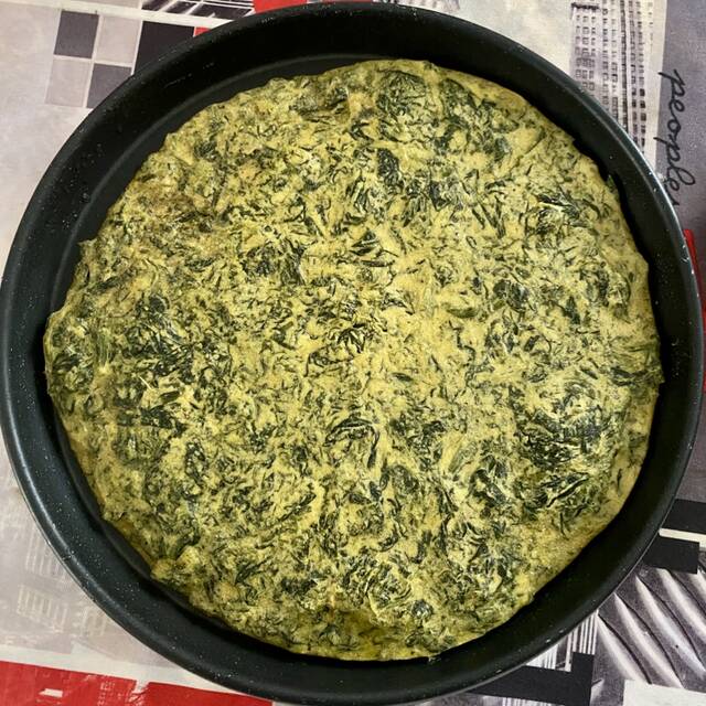 "Frittata" con farina di ceci e spinaci. Sono contenta dell'aspetto, spero sia buona 😋