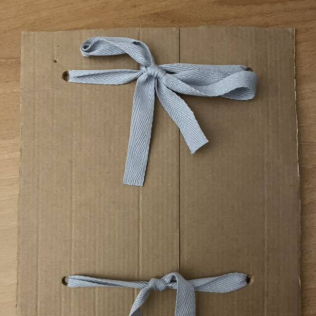 Una delle bambine che viene con la mamma al corso di italiano dove faccio volontariato la scorsa settimana voleva imparare a farsi il fiocco sulle scarpe. Ho provato a farglielo vedere senza molto successo (io stessa ho imparato dopo moltissimo tempo quindi non sono l'insegnante migliore probabilmente) ma mi è venuto in mente di provare a creare una piccola tavola per imparare a fare fiocchi! Un po' di cartoncino e del vecchio nastro e ci siamo! Vediamo se piacerà domani