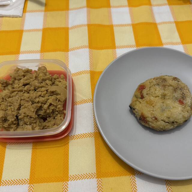 Era avanzato un po’ di ceci e un po’ di riso e così ho fatto una brutta copia dell humus di ceci e poi una polpetta di riso con delle verdure che avevo in frigo!!! 🤤 brutti ma buoni