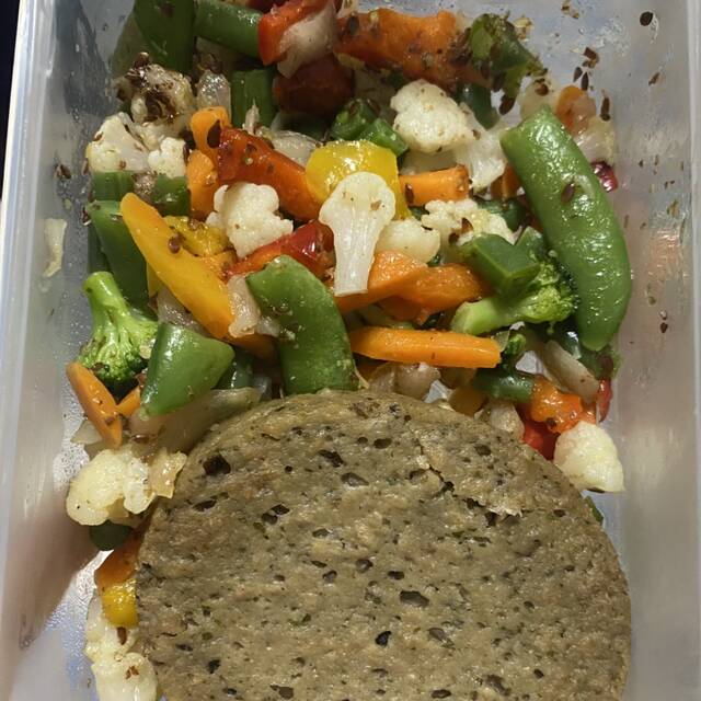 Ciotola di minestrone con fave, fagioli scuri e cannellini, carote, piselli, lenticchie, ceci e pasta mista. Basta farne un po' di più la sera prima!