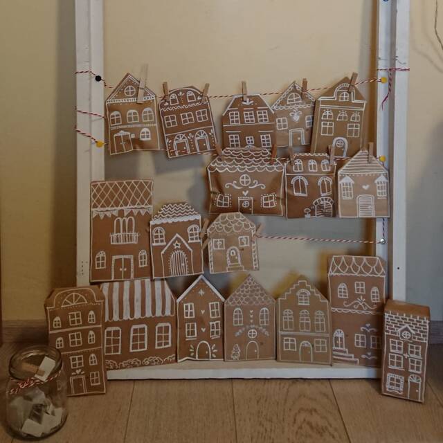 Nel calendario dell'avvento sostenibile c'era un tema sul riuso di carte e pacchetti…ieri con un semplice pennarello bianco abbiamo reso natalizio un normalissimo sacchetto di carta kraft che avevamo in casa.