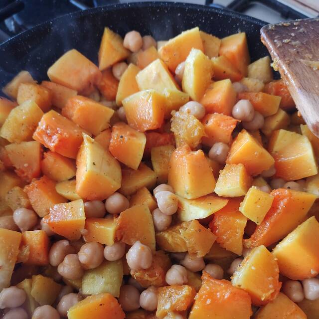 Non è il primo pasto veg dell'anno ma il primo che mi sono ricordata di fotografare 🤣 Amo follemente la zucca e penso che l'abbinamento con ceci o fagioli sia fenomenale, inoltre è un piatto facilissimo da fare ed è un "comfort food" perfetto in questi giorni di pioggia e freddo. Stima approssimativa proteine 9 g dai fagioli, 3 dalla zucca 7g riso L'ho abbinato a del riso per me che non mangio glutine e alla pasta per mio figlio, nel suo caso in versione più brodosa; dopo aver cotto zucca e fagioli con alloro (e quando ce l'ho il porro) frullo tutto grossolanamente per rendere il piatto piu cremoso. È un pasto che ti sazia, ti da calore già solo a sentirne l'odore ed è talmente facile da preparare che ti alleggerisce anche dallo stress di avere mille pentole da lavare dopo 😁 P.s. Per chi era preoccupat* per me, il 31 mi hanno dimessa 🎉 combatterò ancora un po' con ciò che resta della polmonite, mi porterò gli strascichi di tosse a lungo e dovrò stare più riguardata perchè non posso ammalarmi di nuovo, ma sono a casa 🥰