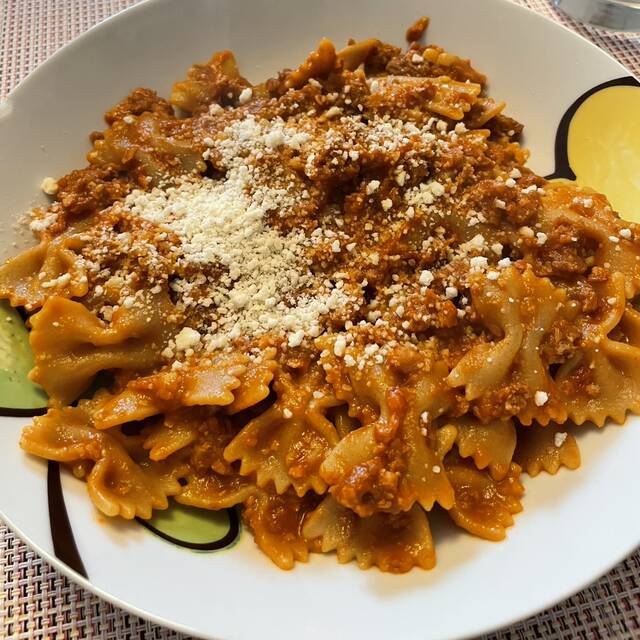 Ecco qui una pasta al ragù veg molto buona e senza sprechi.