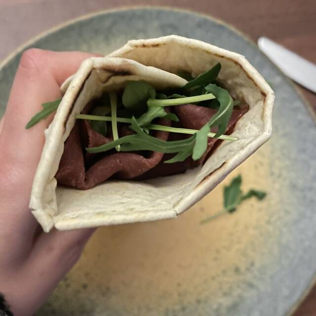 Due volte a settimana vado in palestra alle 20:30 e ceno prima, non potrei farlo una volta tornata a casa perché in questo caso andrei a dormire troppo tardi. Spesso mi preparo una piadina per fare veloce, questa è con mopur, un po' di spalmabile vegetale che avevo ancora in frigo e rucola Il mopur è realizzato a partire da lievito madre e farine a base di cereali e legumi con 30g di proteine ogni 100g! É un prodotto processato, io cerco di non mangiarne molti però una o due volte a settimana capita In questa piadina c'erano circa 17/18g di proteine