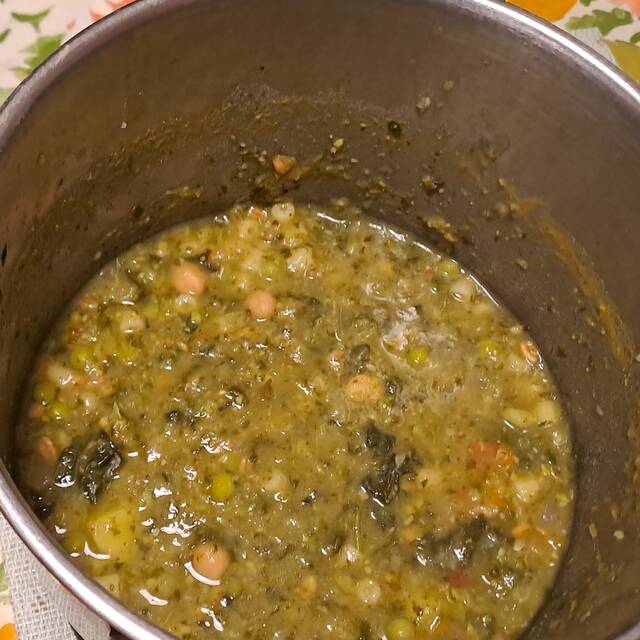 Pasta con cavolo nero, fagioli borlotti, patata(una piccola) e…. Cardamomo. Buona e deliziosa.