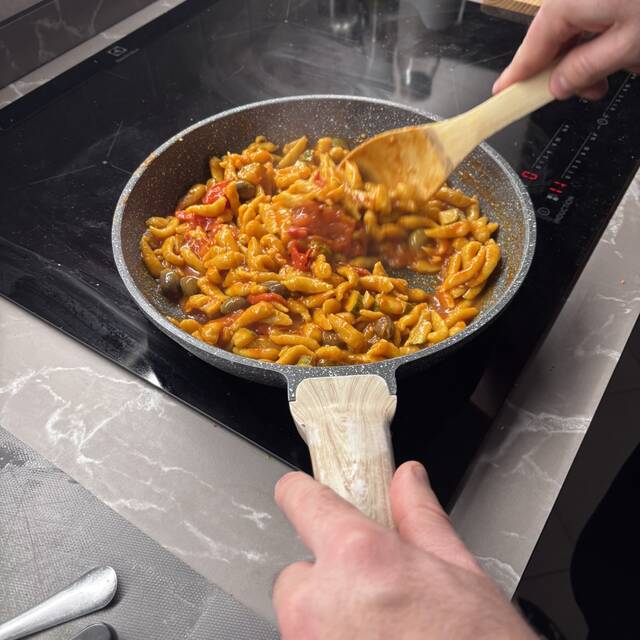 Marito all'opera, spätzle di zucca con sugo di verdure e dadolata di zucca 😋