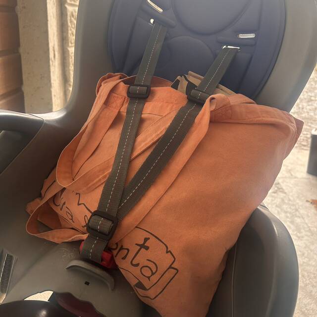 Io e mia zia facciamo a gara: io ho messo il sacco da 5 kg di farina al posto del bimbo sul seggiolino, lei ha pure messo la piantina di menta nel borsone 😅 Viva la bicicletta e le soluzioni creative per trasporti ingombranti 🤣