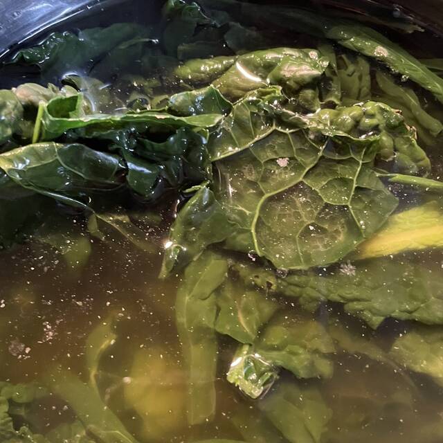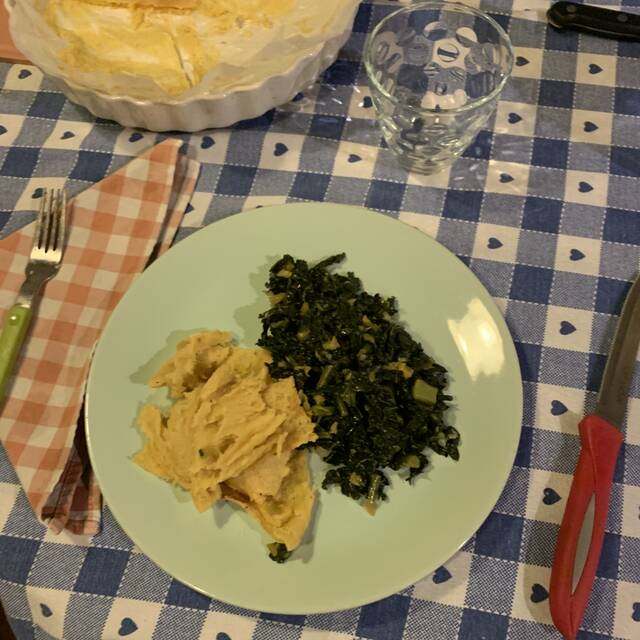 Oggi si va di cavolo nero. Una buona zuppa. Una parte l ho tenuta per fare delle chips al forno che ci piacciono tantissimo.