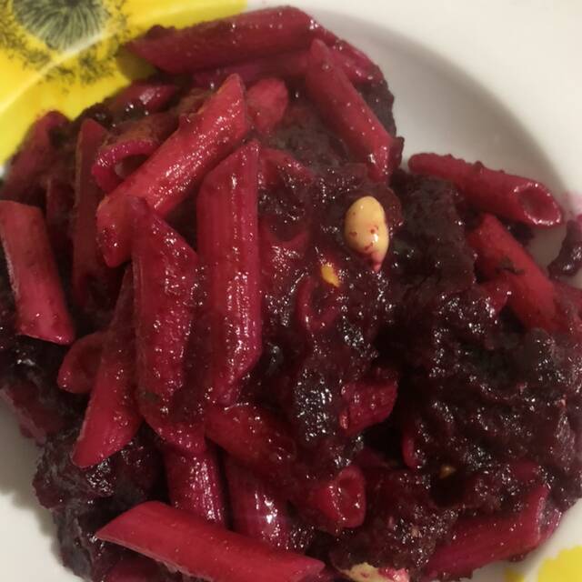 La cena di ieri sera: pasta con rape rosse e arachidi 😋 anche questo pasto molto semplice da preparare e molto gustoso. Consiglio anche la versione con i pistacchi