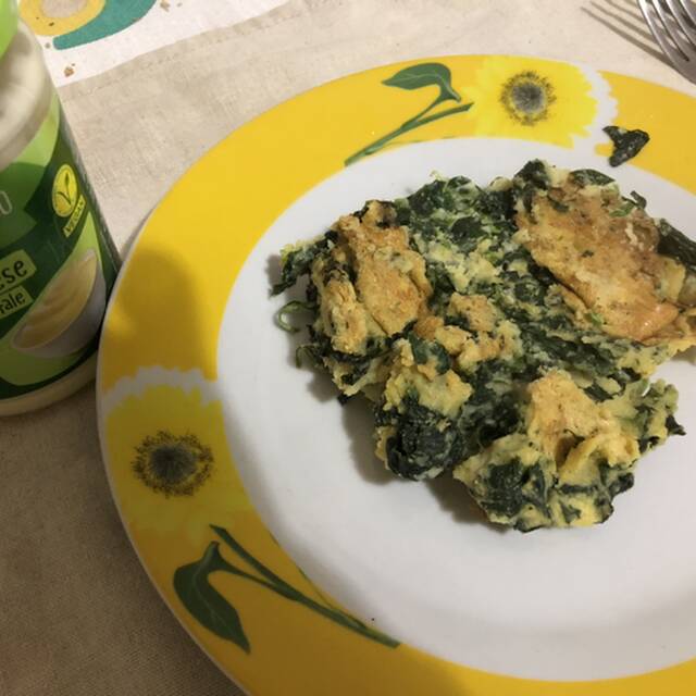 Ho provato a fare la frittata di spinaci in chiave vegana, con la farina di ceci…ehm, il risultato non è ottimale, buono ma un po' secco…ho apparato con la mayo veg 😬 ma magari la riproverò …