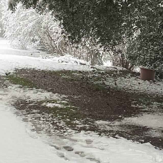 Oggi qui è nevicato! Anche ieri c'era qualche fiocco ma non aveva attaccato, oggi abbiamo il giardino tutto bianco! ❄️✨ (Pensavo di aver già pubblicato ma ci deve essere stato qualche errore perché non vedo il post)
