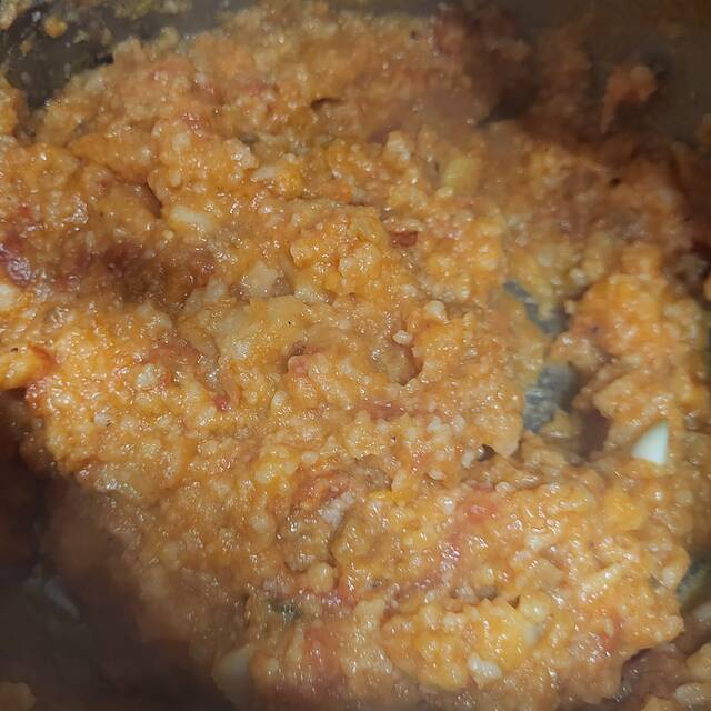 Il ragù? Quello che mi era rimasto: ho aggiunto un po' di vino rosso, sfumato, aggiunto un po' di acqua e nuove lenticchie.