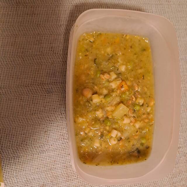 Cous cous improvvisato con un mix di cous cous di grano e di lenticchie e ceci, condito con un po’ di ceci cotti e insaporito con del paté di olive. Dai miei calcoli dovrebbero esserci circa almeno 15 gr di proteine in questa porzione. Purtroppo non ho avuto tempo di prepararmi le verdure, farò doppia dose questa sera a cena!