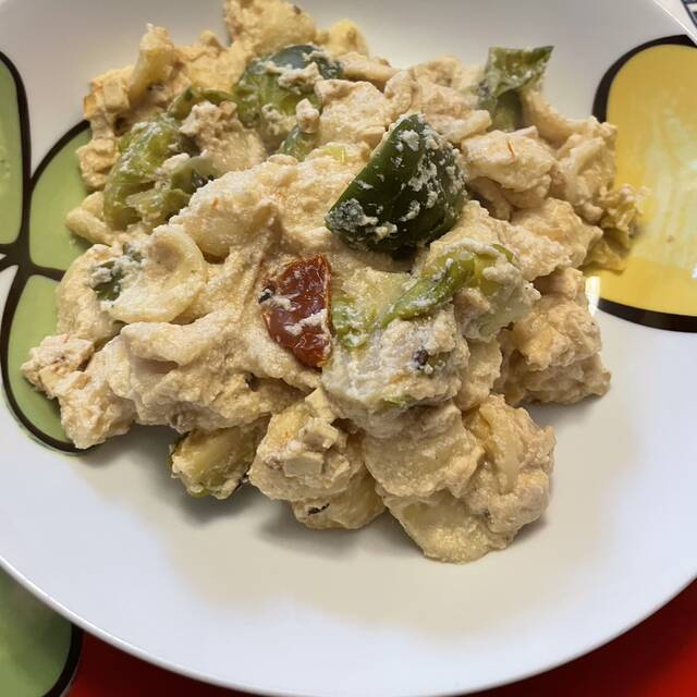 Orecchiette con crema di tofu, pomodori secchi e cavoletti di Bruxelles 💚
