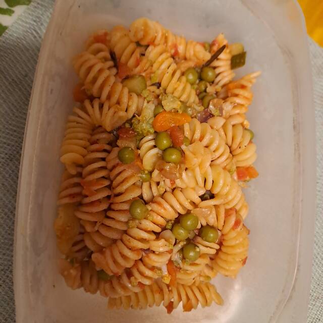 Pranzi di ieri, fusilli con crema di piselli e lievito secco. 💚