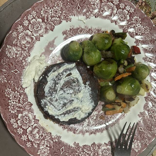 Altro pranzetto veloce in ufficio con: -freschiotta (sostituto vegetale della ricotta) di Farroria della Mandorla 🌱 - cavoletti di Bruxelles - a parte piadina di kamut (non avevo paneeee)