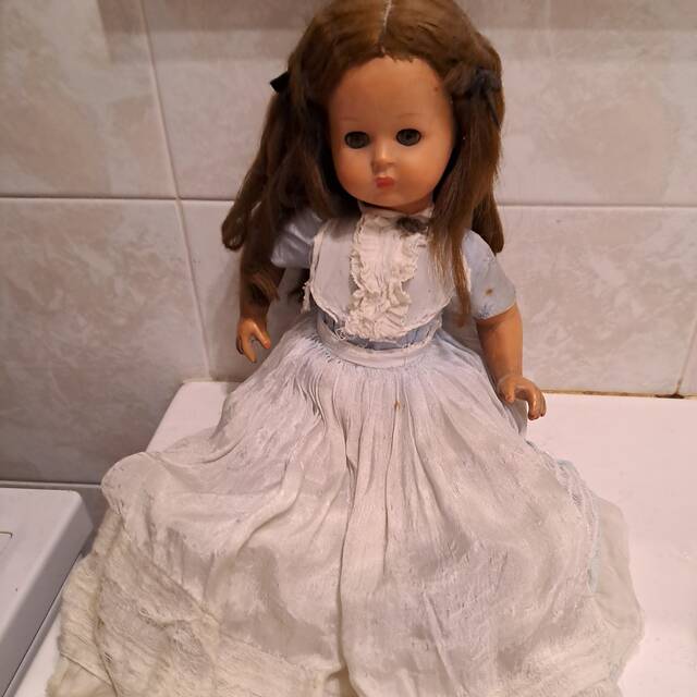 Non ho dubbi: questa bambola è l'oggetto che dura nel tempo, da taaaanto tempo. Ero una bimbetta quando la mia bis-nonna Menta ce la regalò. Piacque subito anche a mia madre che la teneva in camera, le lavava il vestito e talvolta lo rammendava. Non è di gomma, non so dire di che materiale sia. Ha accompagnato tanti momenti a casa nostra. Quando è nata? Senz'altro nei primi anni del 900. Ora l'ho portata a casa e mi osserva dal mio comò in camera. E' un bellissimo ricordo!