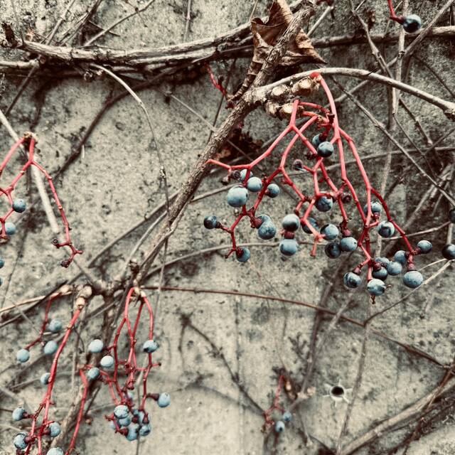 Faccio sempre la stessa passeggiata, quasi ogni giorno ma in ogni stagione cambia il paesaggio. C’è un muro dove - a seconda del periodo - ci sono colori diversi, questa è la versione natalizia.