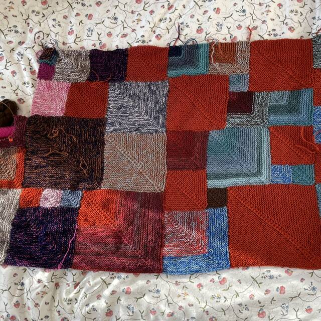 Non è proprio una donazione perché è ancora in lavoro, con il gruppo con cui avevamo preparato le coperte per sheep italia abbiamo pensato di continuare a lavorare tutto l'anno a coperte da donare qui in zona o da spedire il prossimo anno a Sheep. Io sto facendo questa coperta con una tecnica chiamata "mitered square". É un metodo comodo perché si riprendono i punti direttamente dai quadrati esistenti senza dover cucire! In ogni caso, per scrivere qualcosa più aderente alla sfida, quando doniamo dei vestiti li portiamo all'associazione Lucchetta Ota d'Angelo di Trieste, mettono a disposizione delle famiglie dei bambini che vengono da tutto il mondo a curarsi a Trieste ma anche di persone della città che hanno bisogno